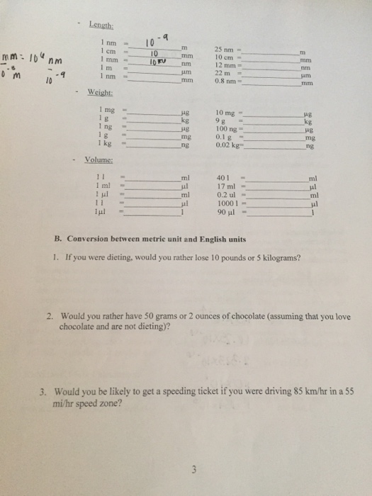 Solved Converting Metric Units Length Sheet 3 6 M 2 60 Chegg Com