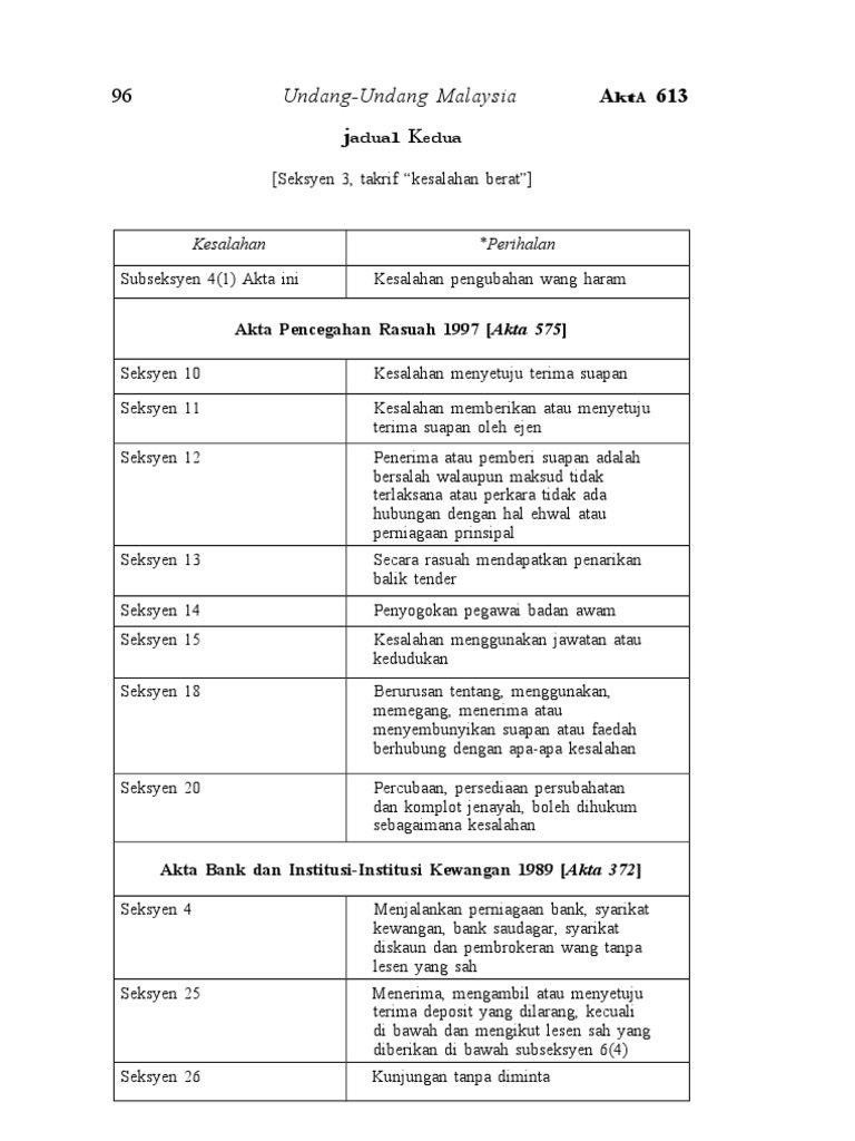Akta 613 Akta Pencegahan Pengubahan Wang Haram Pencegahan Pembiayaan Keganasan Dan Hasil Daripada Aktiviti Haram 2001