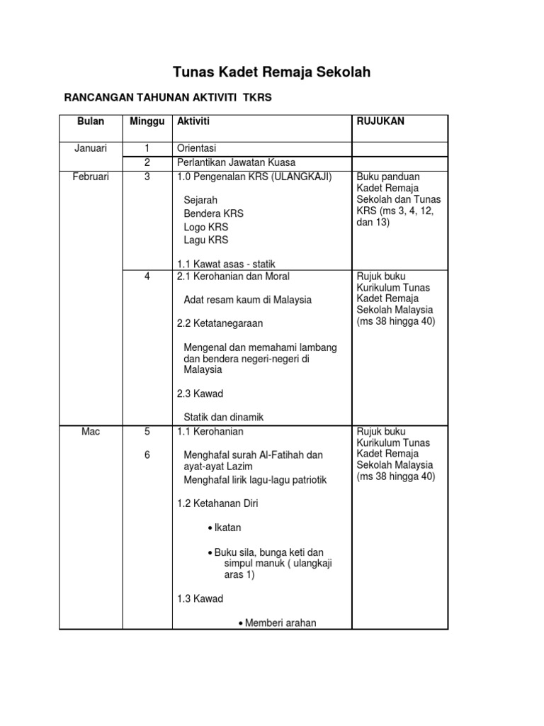 Rancangan Tahunan Aktiviti Tunas Krs Aras 1