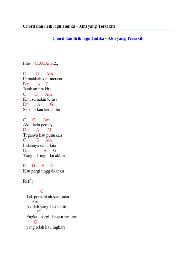 Chord Dan Lirik Lagu Judika Aku Yang Tersakiti