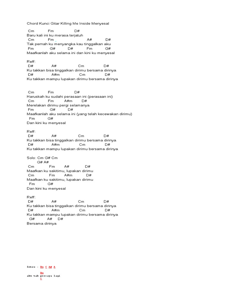 Chord Kunci Gitar Killing Me Inside Menyesal