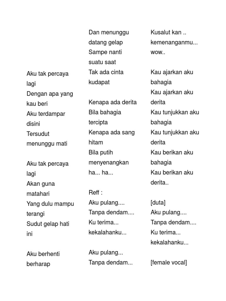 Aku tak percaya lagi artis artist. The mercy s vokak vocal. 50 videos play all mix grace simon aku tak percaya lagi youtube grace simon aku tak percaya lagi official karaoke video duration. Aku tak percaya lagi dengan apa yang kau beri aku terdampar di sini tersudut menunggu mati aku tak percaya lagi akan guna matahari yang dulu mampu terangi sudut gelap hati ini aku berhenti berharap dan menunggu datang gelap sampai nanti suatu saat tak ada cinta kudapat kenapa ada derita bila bahagia tercipta kenapa ada sang hitam bila putih menyenangkan.