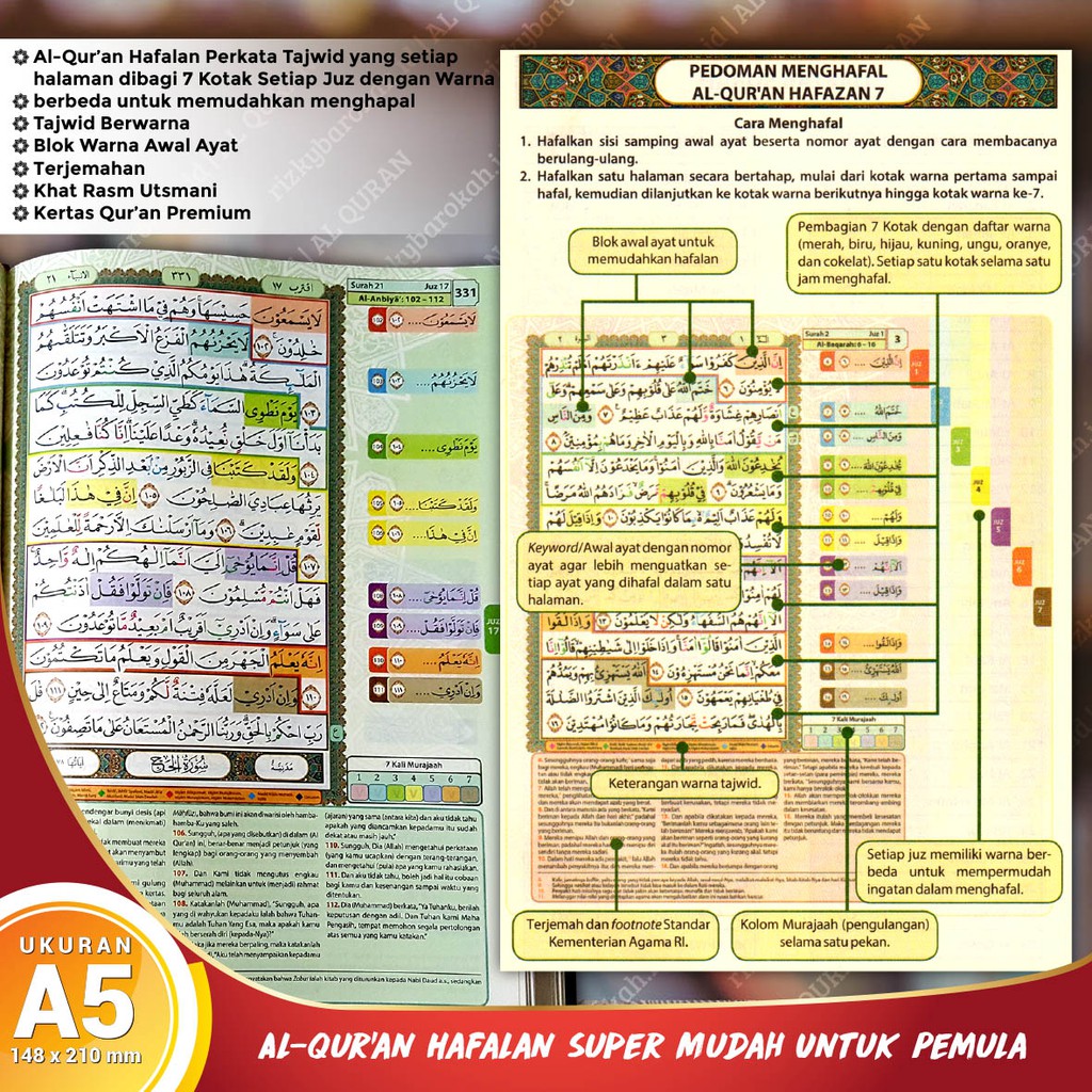 Al Quran Hafalan Terjemah Tajwid Warna Hafazan 7 A5 Shopee Indonesia