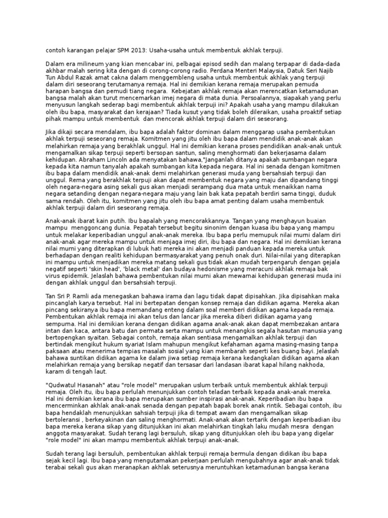Contoh Karangan Spm
