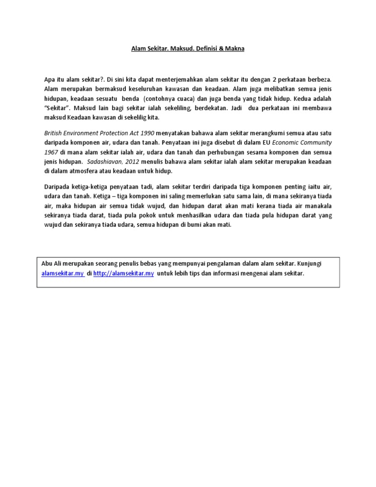 Apa Itu Alam Sekitar Doc Apa Itu Alam Sekitar 1 U201calam U201d Bermaksud Dunia Bumi Atau Segala Yang Terdapat Di Langit Dan Bumi Manakala U201csekitar U201d Course Hero