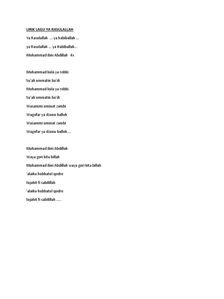Ya Rosulallah Lyrics By Jefri Al Buchori Yaa Rasulallah Yaa Khabiballah Yaa