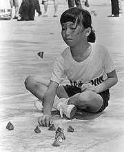Permainan ini biasanya dimainkan oleh kanak kanak perempuan secara individu atau berkumpulan yakni dua orang atau lebih. Permainan tradisional ini digemari oleh kanak kanak perempuan. Permainan ini gemar dimain oleh kanak kanak perempuan. Asal usul batu serembanpermainan ini dimainkan dari negara nepal ke seluruh benua india dan kemudiannya sampai ke malaysiadari seremban negeri sembilan batu serembanbatugulibiji getahobjek digunakan untuk bermaincara main batu serembansekiranya bermain secara berkumpulan atau berdua giliran diberikan kepada ahli kumpulan lain sekiranya pemain pertama batal dan gagal meneruskan permainan dalam langkah menjentik buah sekiranya dua biji buah yang ditinggalkan pihak lawan terlalu dekat.