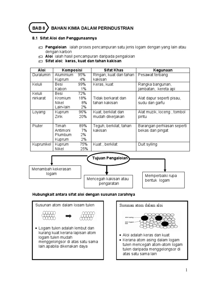 Bab 8 Bahan Kimia Dalam Perindustrian 8 1 Sifat Aloi Dan Penggunaannya