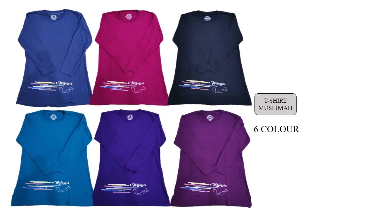 Ready Stok Baju Tshirt Muslimah Labuh Lengan Panjang Perempuan Wanita Top Casual Muslim Women Fashion Blouse