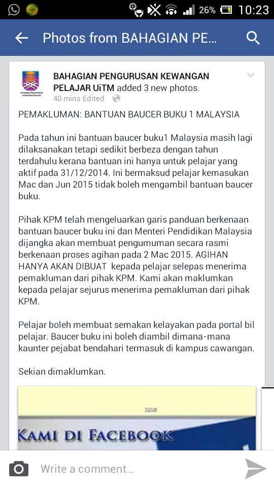Pemakluman Bantuan Baucer Buku 1 Jabatan Pengurusan Kewangan Pelajar Facebook