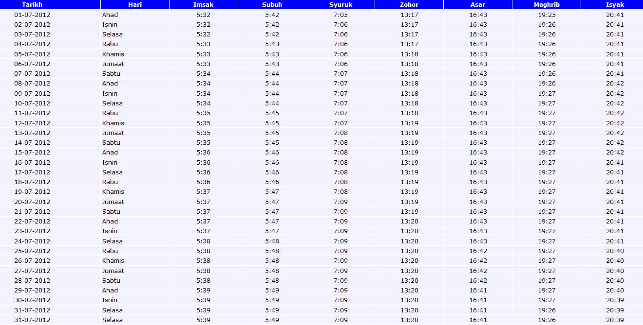 Eilarazi Waktu Solat 5 Waktu Di Daerah Temerloh Maran Bera Jerantut Chenor Bagi Tahun 2012