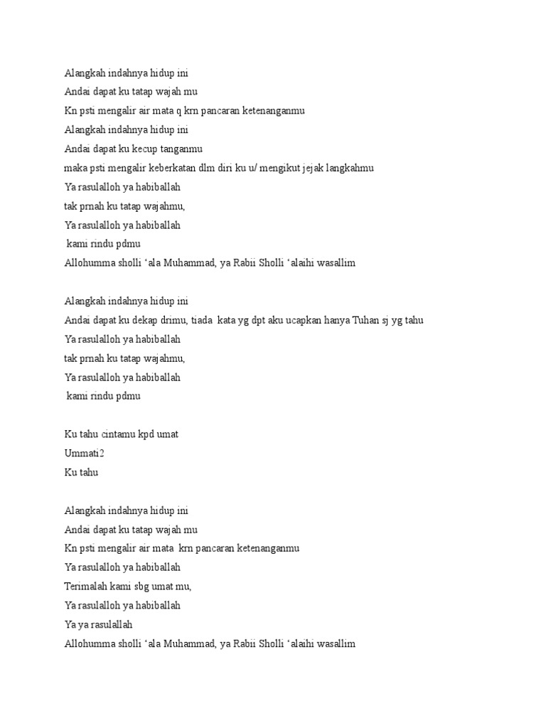 Teks Arab Ya Rasulullah Ya Habiballah Berbagai Teks Penting