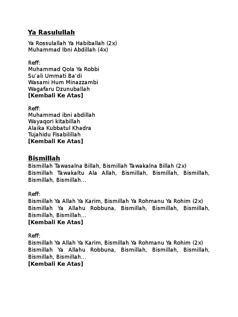 Lirik Lagu Ya Rasulullah Ya Habiballah Muhammad Ibni Abdillah Lirik Arab