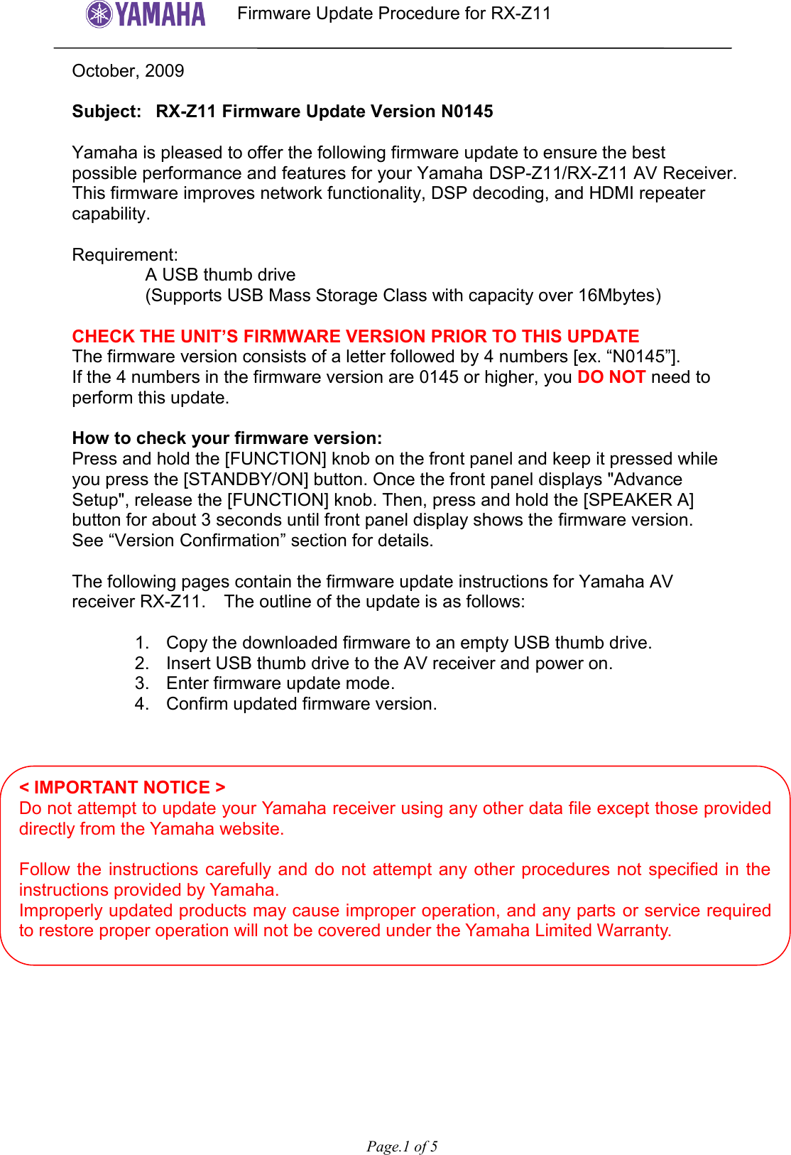 Yamaha Rx Z11 Firmware Update N0145 Usa Model Page 1