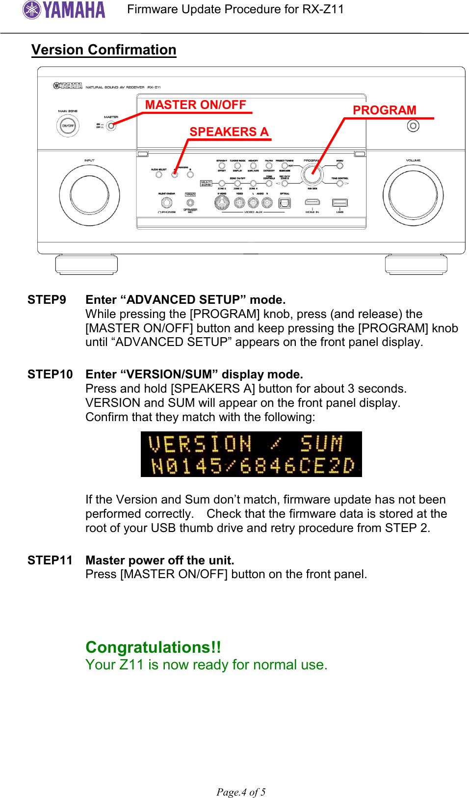 Yamaha User Firmware Update Procedure Rx Z11 N0145 Usa Rxz11
